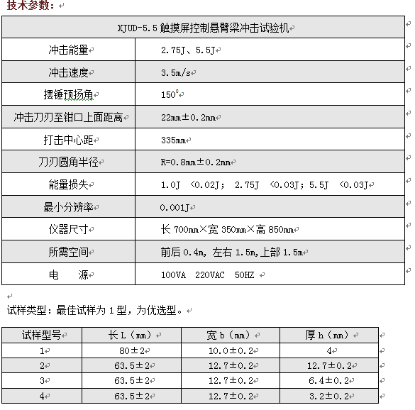 XJUD5.5觸摸屏控制懸臂梁沖擊試驗機儀器特點: