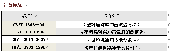 用已知能量的擺錘一次沖擊支撐成垂直懸臂梁的試樣,測量試樣破壞時所吸收的能量,沖擊線到試樣夾具為固定距離,對于缺口試樣,沖擊線到缺口 線為固定距離。試驗機應為擺錘式,并由擺錘、試樣支座、能量指示機構(gòu)和機體等主要構(gòu)件組成,能示試樣破壞過程中所吸收的沖擊能量。